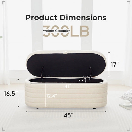 45X16.5 Inch White Teddy Storage Ottoman Bench,Oval Footrest with Anti-Slip Legs