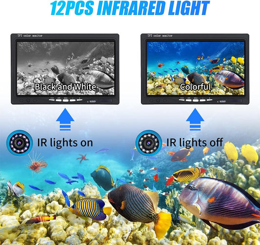 Underwater Fishing Camera, Portable Video Fish Finder Camera 7 Inch LCD Monitor 1000TVL with Depth Temperature Display, 12PCS IR Infrared LED 15M/50FT Cable Fishing Camera for Ice Lake Boat Fishing