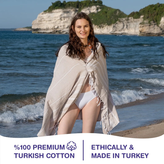 Turkish Beach Towels, Bulk Case of 12 | Oversized, Quick Dry, Sand Free | 100% Cotton, Large 38X71" Towels for Beach, Pool, Travel | Ultra-Soft, Compact, Absorbent | Beige